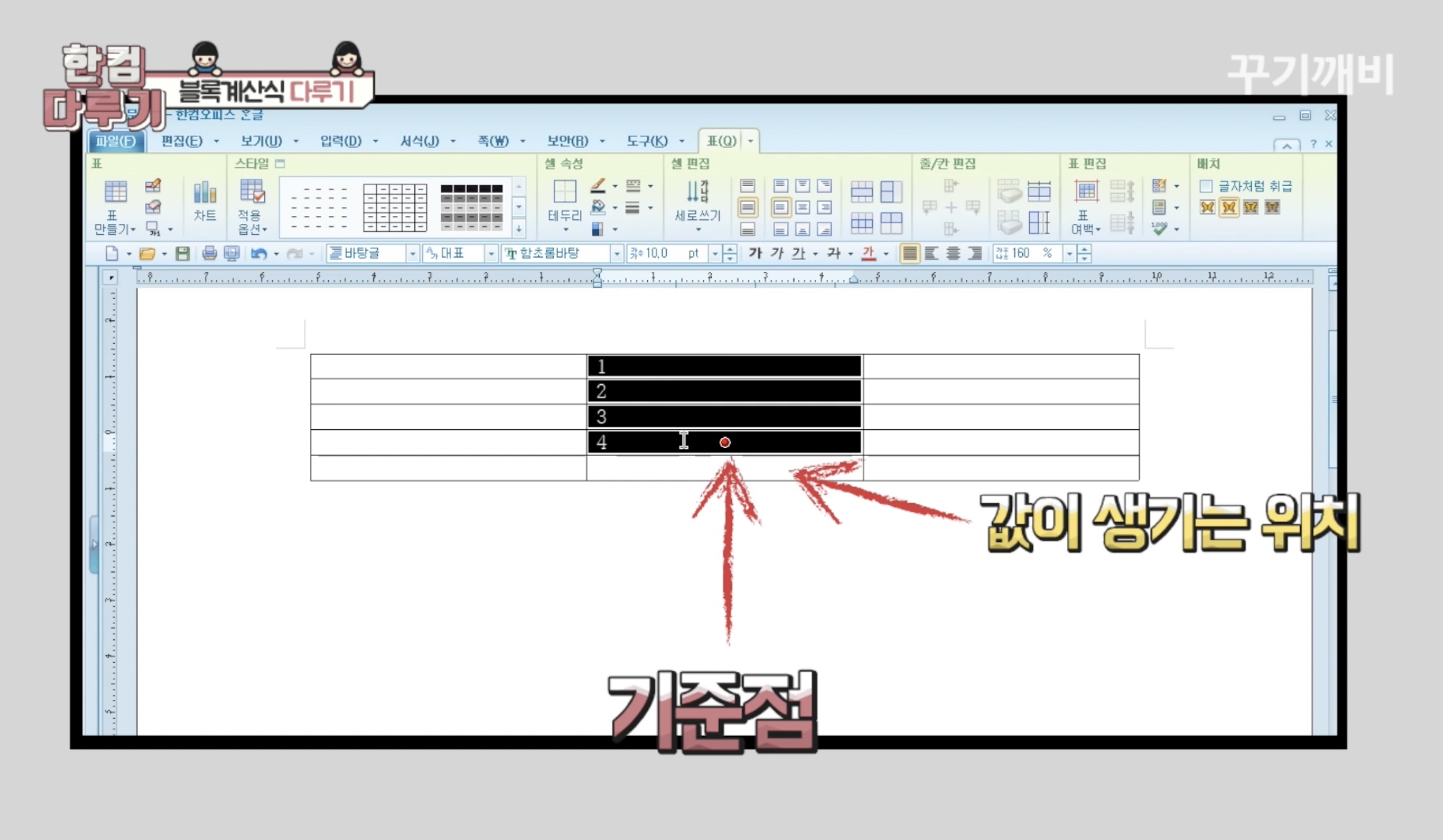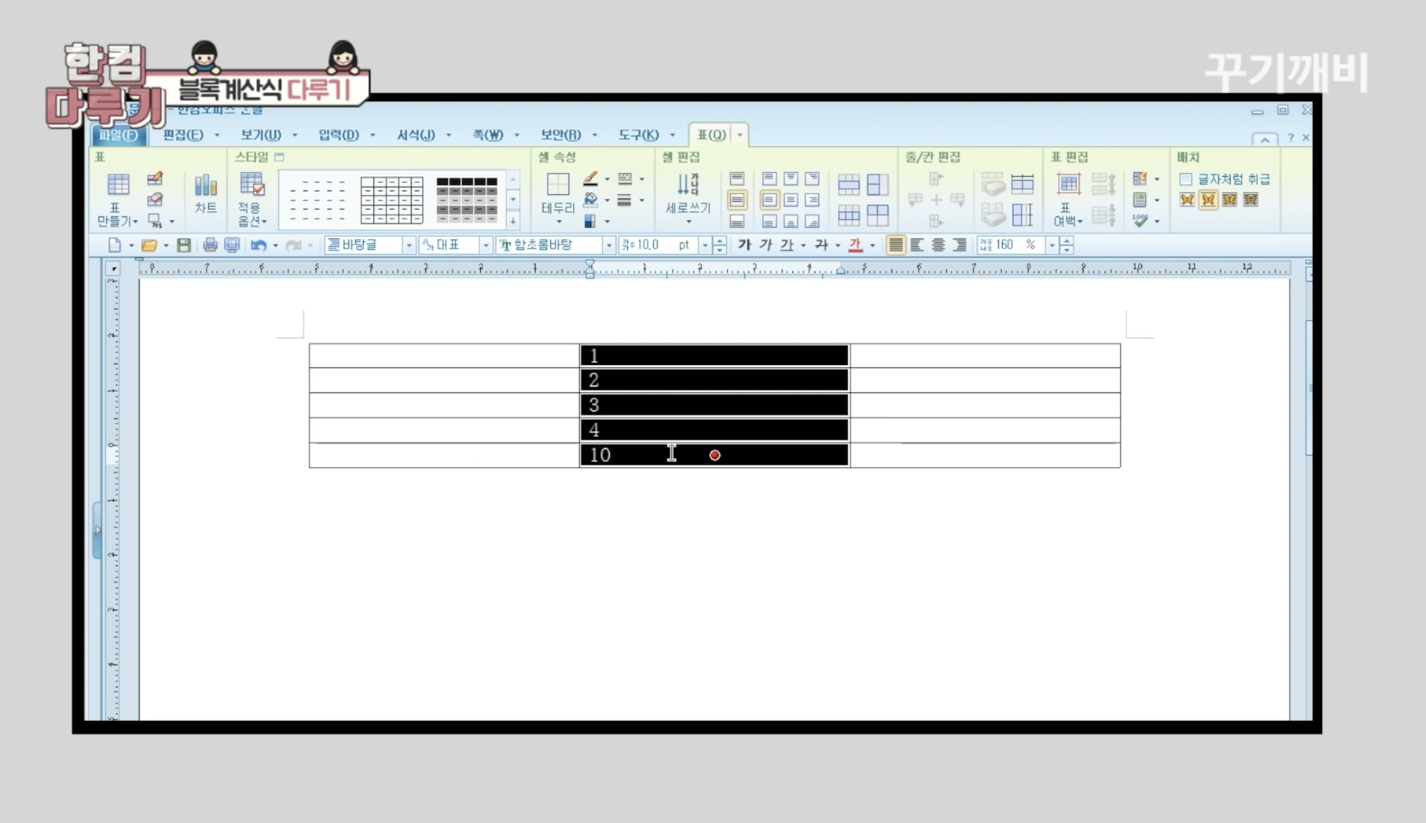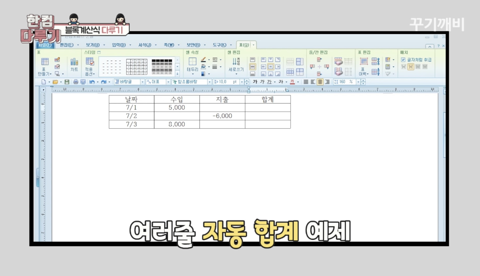 오늘은 한컴오피스 / 한글 문서의 표 기능 중