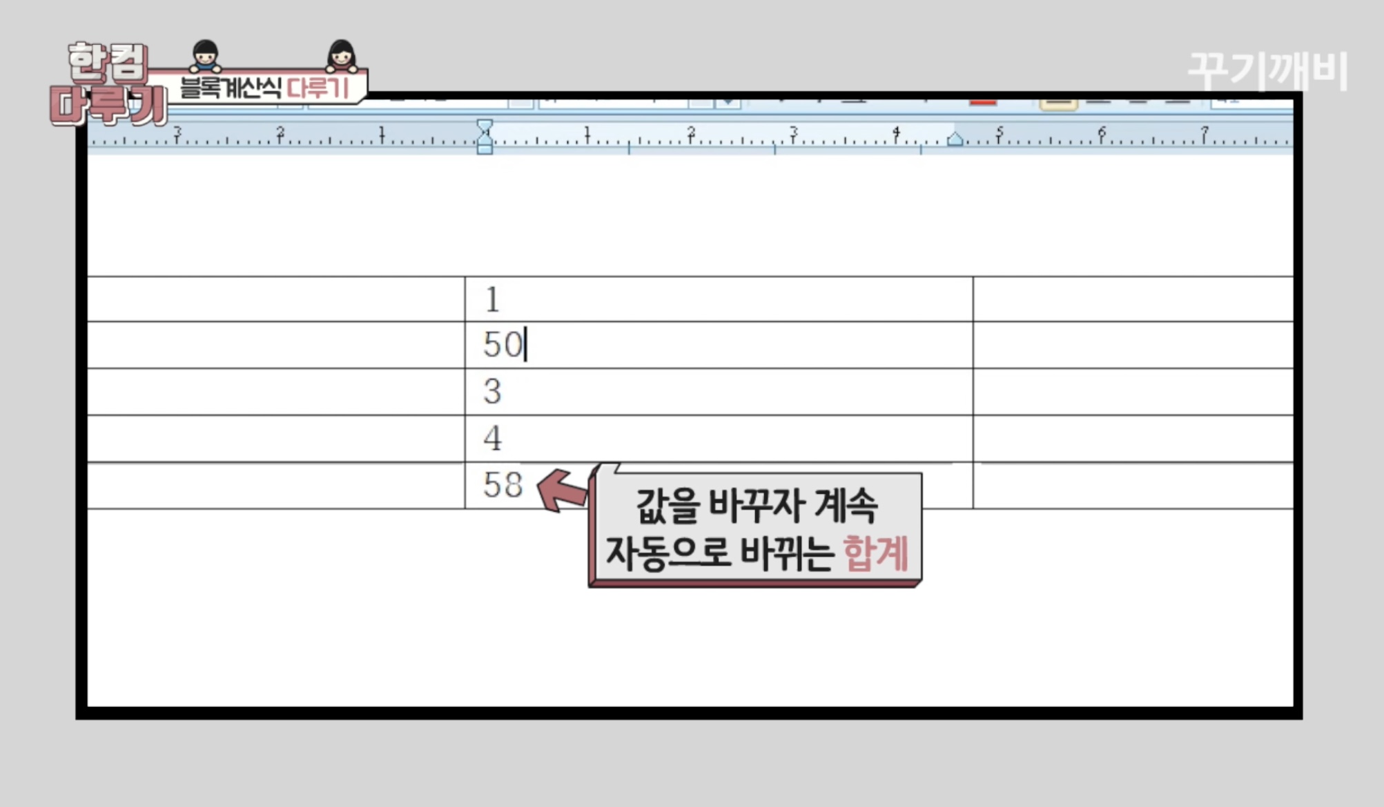 합계도 자동으로 바뀌는 것을 보실 수 있습니다!