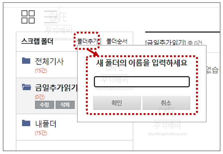 마지막으로 스크랩 폴더를 추가하는 방법은