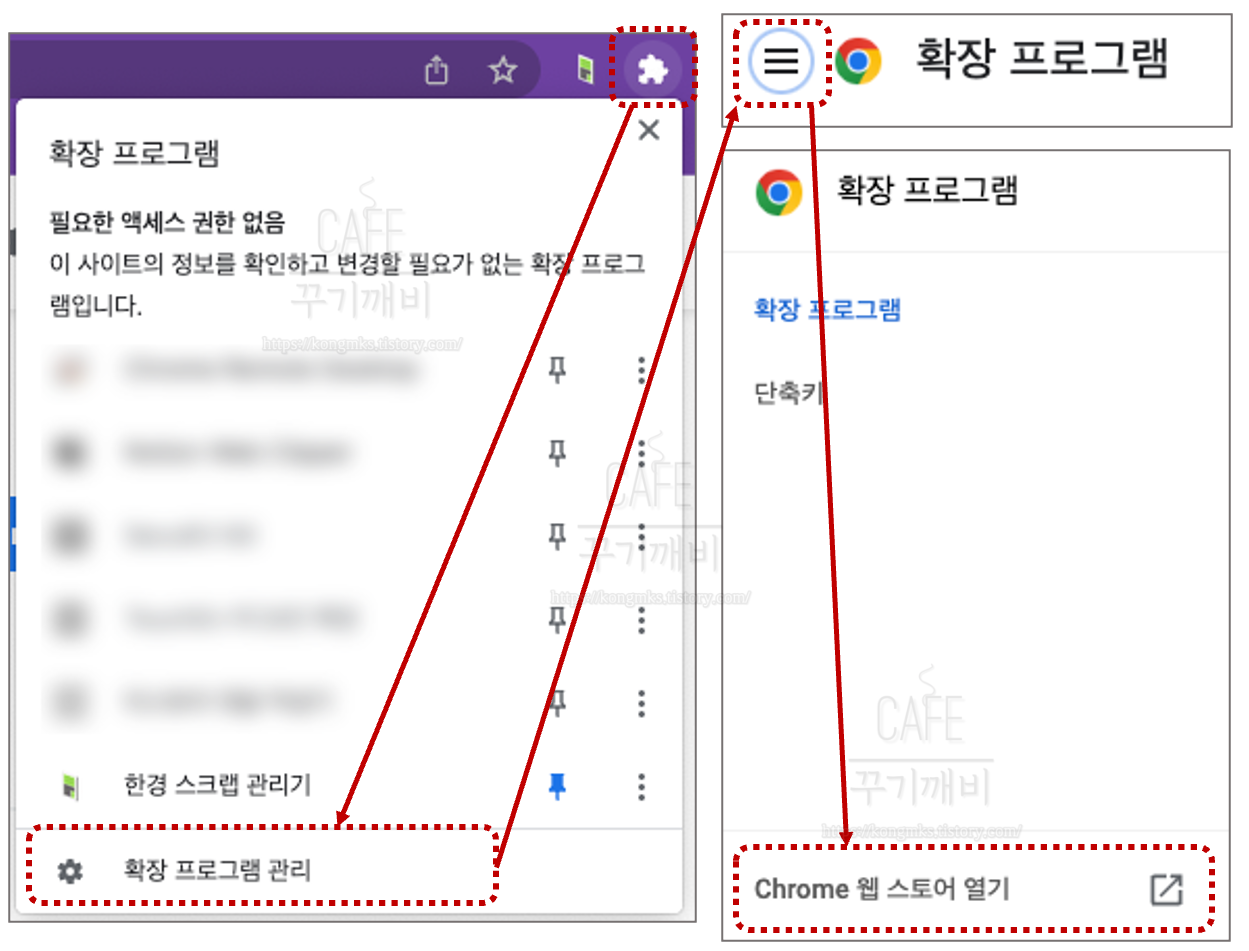 이 버튼을 눌러 "확장 프로그램 관리" 페이지로 가서