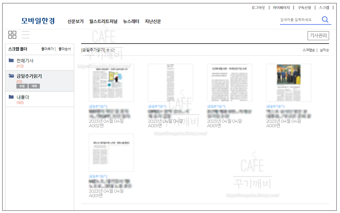 모바일 한국경제신문 스크랩기능 이용하기 / PC버전
