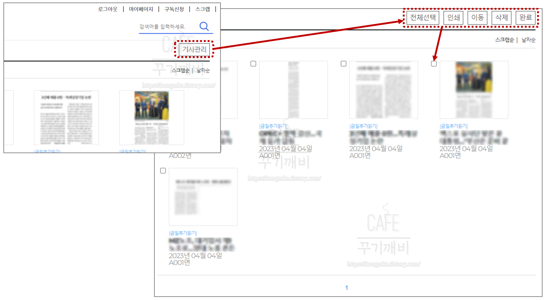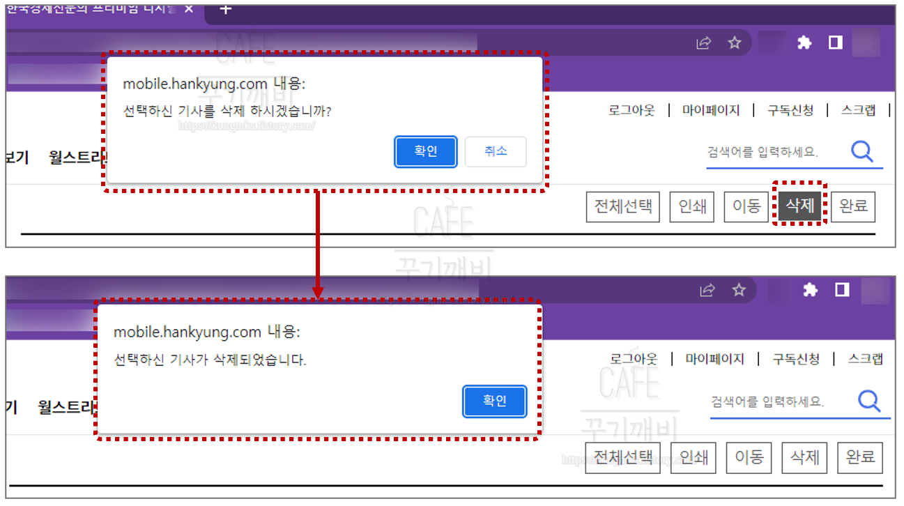 한경 스크랩 관리기 사용법 - 단축키를 이용해 스크랩 기사 삭제하기