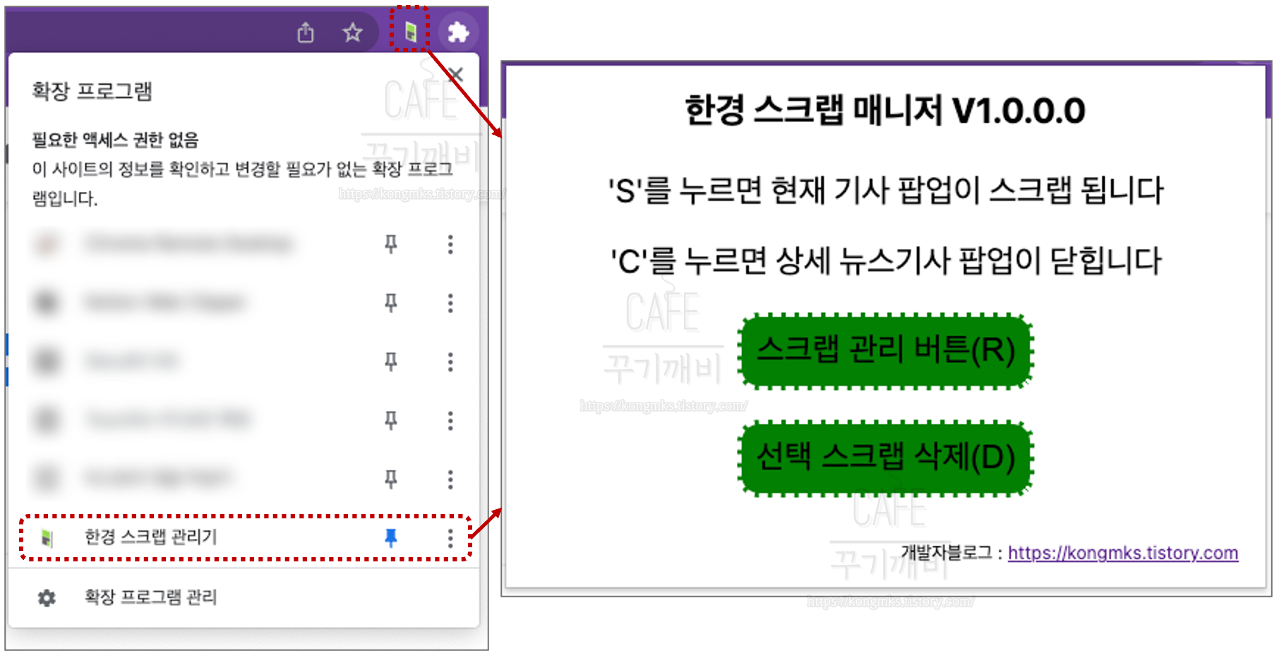 크롬 확장 프로그램 "한경 스크랩 관리기" 설치 방법