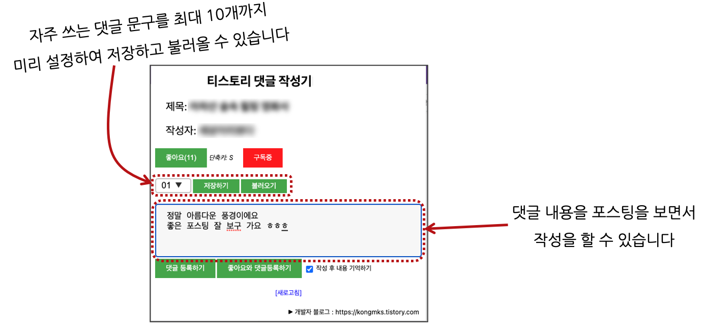 자주쓰는 댓글 문구 저장하고 불러오기