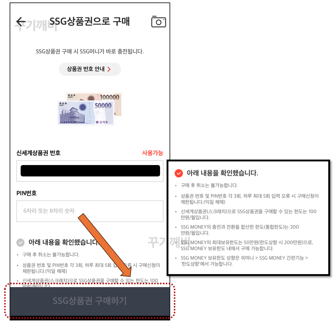 "SSG상품권 구매하기" 버튼을 눌러주세요.