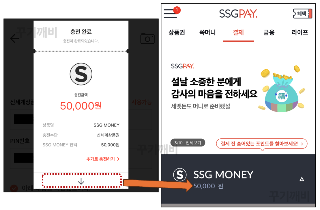 SSG머니로 충전되는 것을