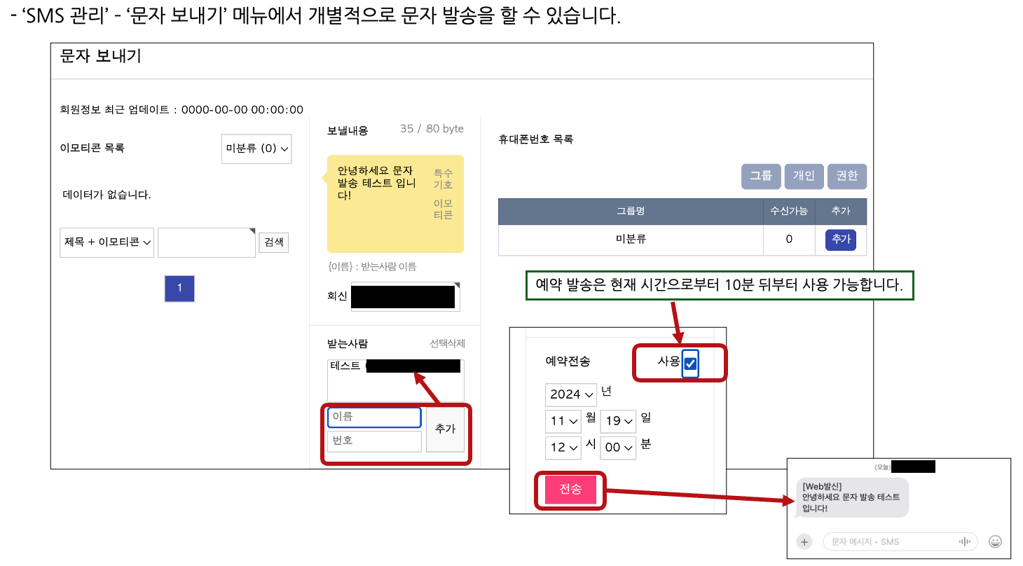 4. 건별 문자 발송과 예약 전송 기능