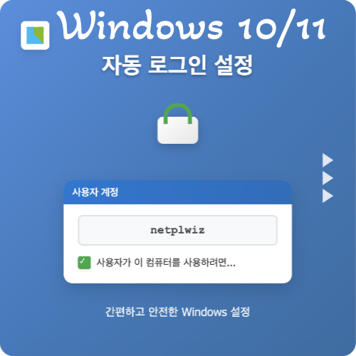 netplwiz 명령어를 통해 간편하게 자동 로그인 설정이 가능합니다.